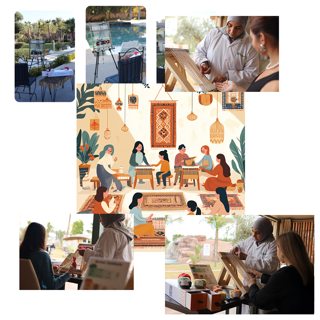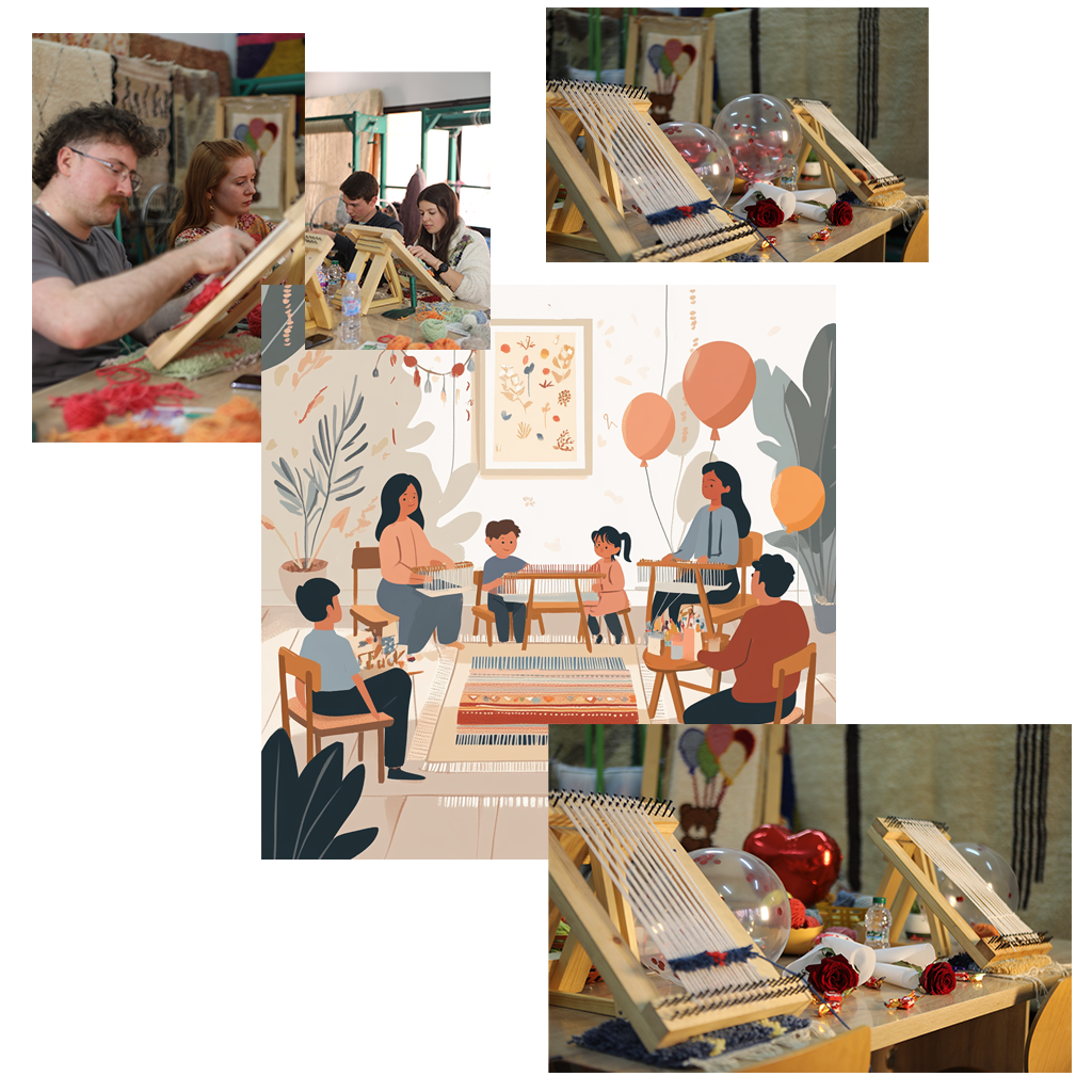 Experience the art of Moroccan rug weaving with your family, friends, or colleagues at MyRugy. Whether at our workshop, your workplace, or even online, enjoy a hands-on, cultural experience that brings people together through creativity and tradition.