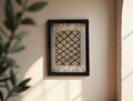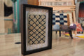 This framed artwork isn't just decor â it's heritage woven into wool. A hand-knotted Moroccan rug, framed in smooth solid wood and protected by crystal-clear plexiglass, this piece captures the essence of artisanal craftsmanship.