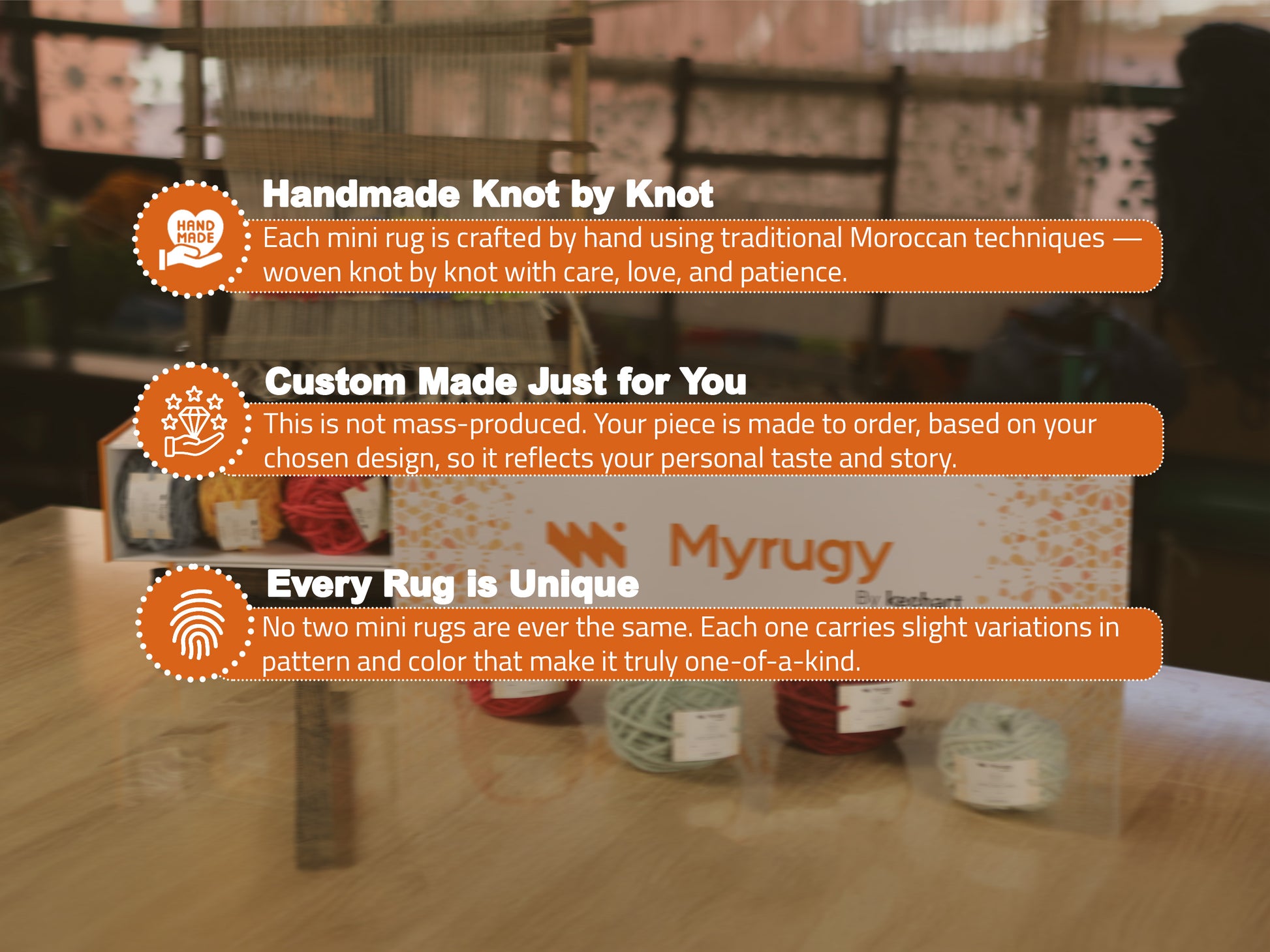 With the MyRugy Box Kit, you can create your own rug at home — knot by knot, just like this one. No experience needed. Comes with a mini loom, naturally dyed wool, and step-by-step video instructions.