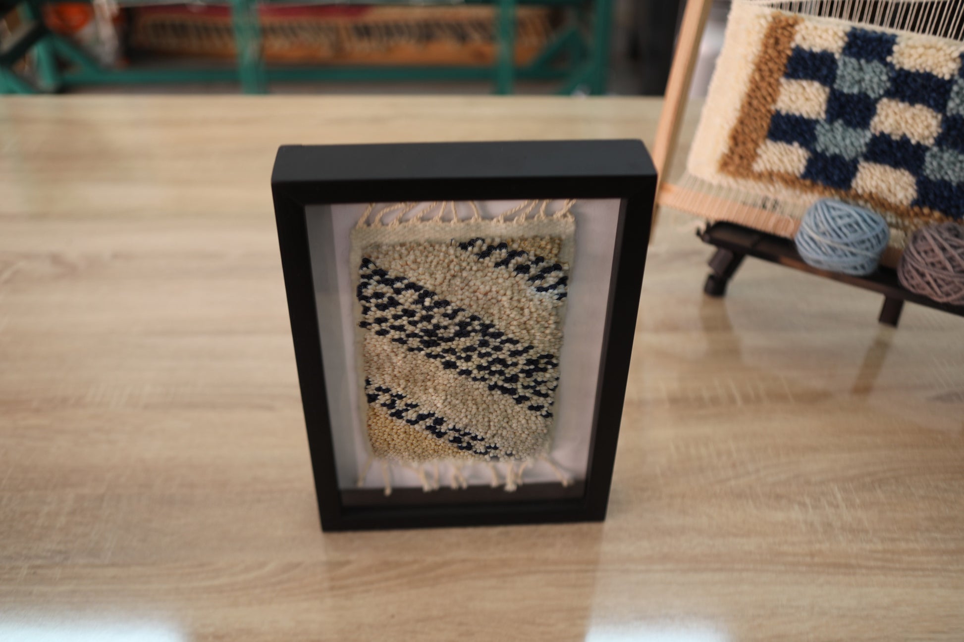 Every thread tells a story. With rich tones of black and cream. and a pattern of zigzag Berber patterns., each miniature rug is made knot by knot using traditional Moroccan weaving techniques.