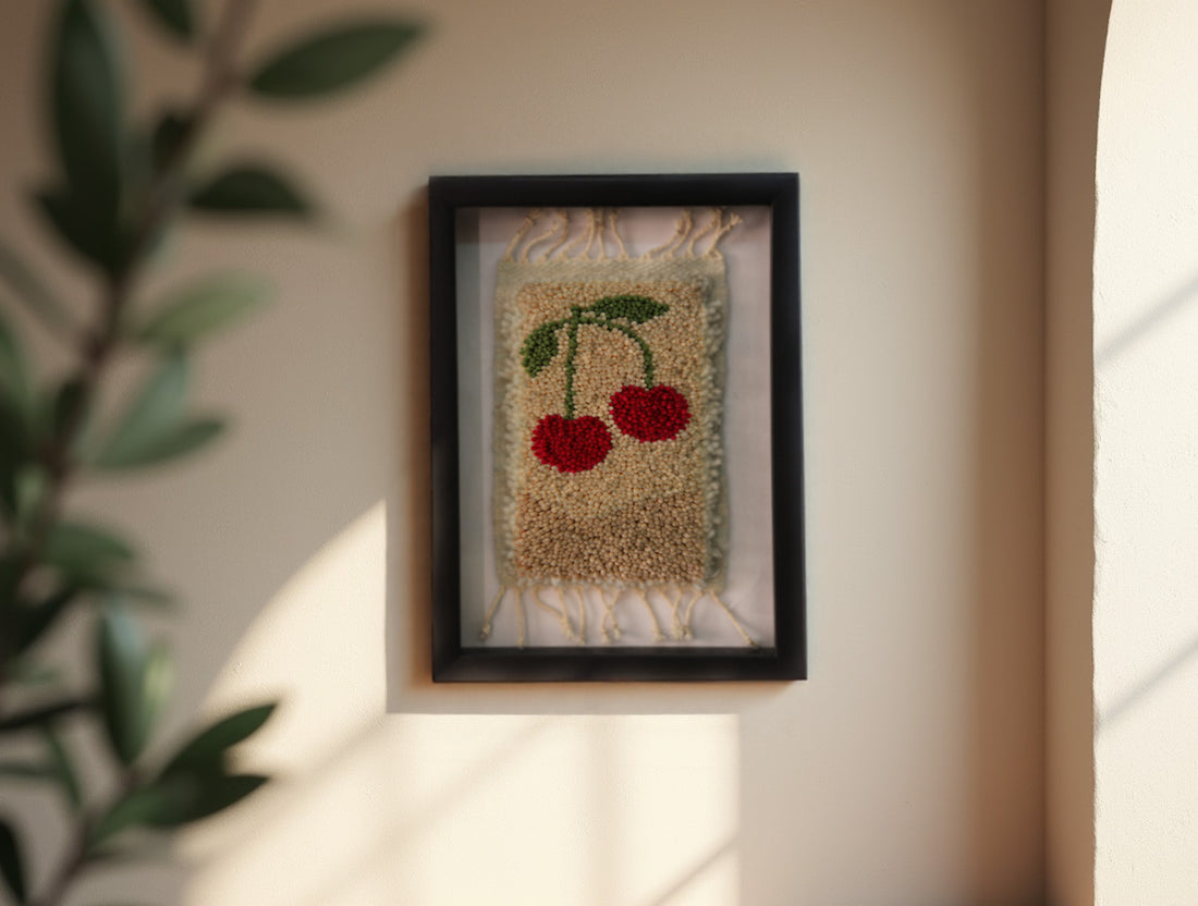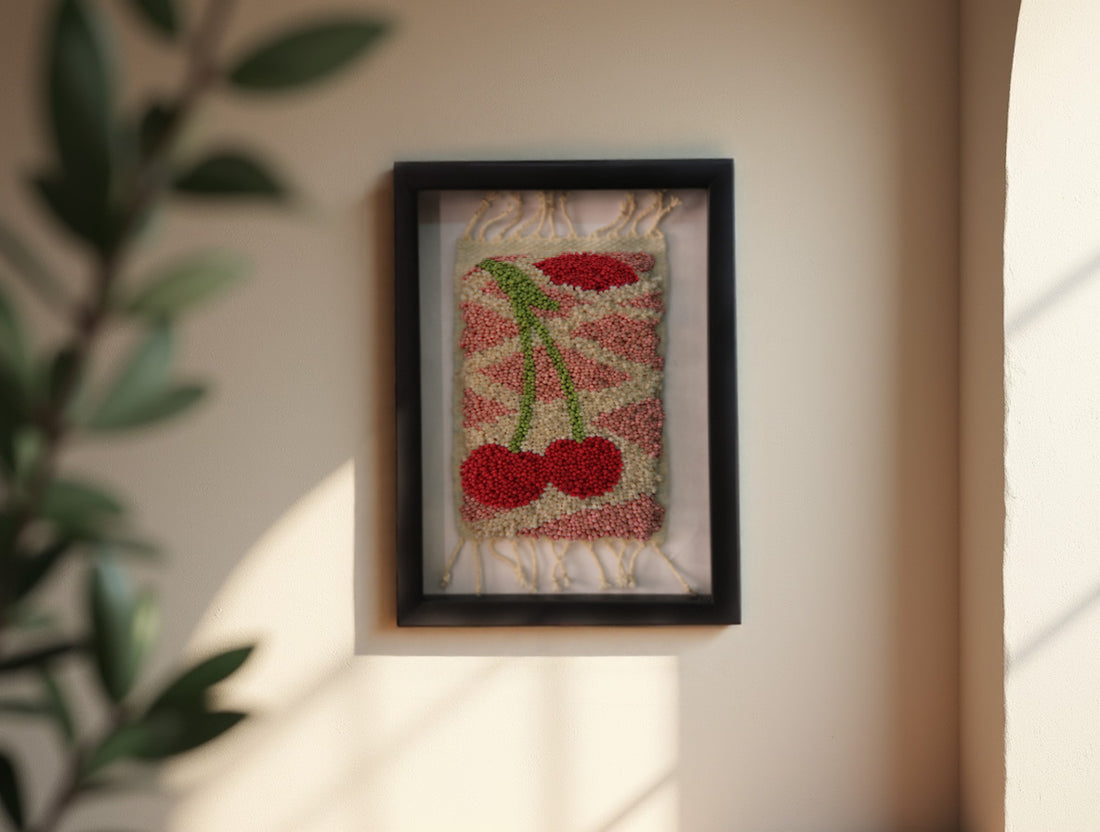 Classic Cherry Tufted Wall Hanging – Minimalist Handcrafted Art in Frame – MyRugy Collection