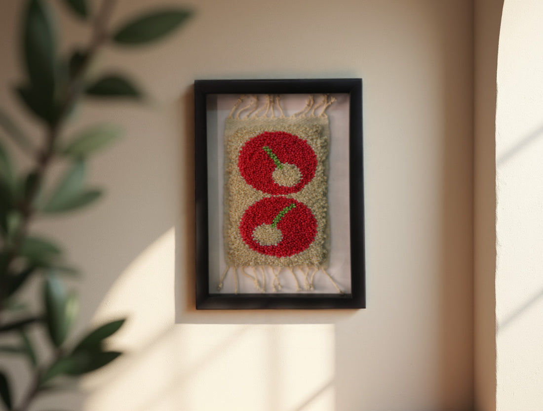 Oversized Cherry Duo Wall Hanging – Bold Minimalist Tufted Art – Handmade Textile Framed Decor by MyRugy