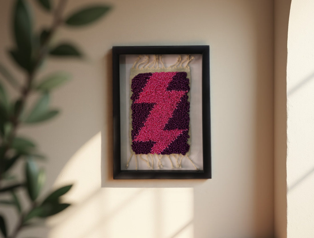 Pink & Plum Lightning Moroccan Rug Wall Art – Framed Hand-Knotted Textile (25x31 cm)