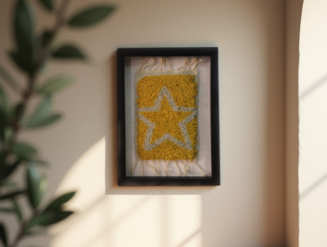 Star Moroccan Rug Wall Art – Hand-Knotted Framed Tapestry Decor (25x31 cm)