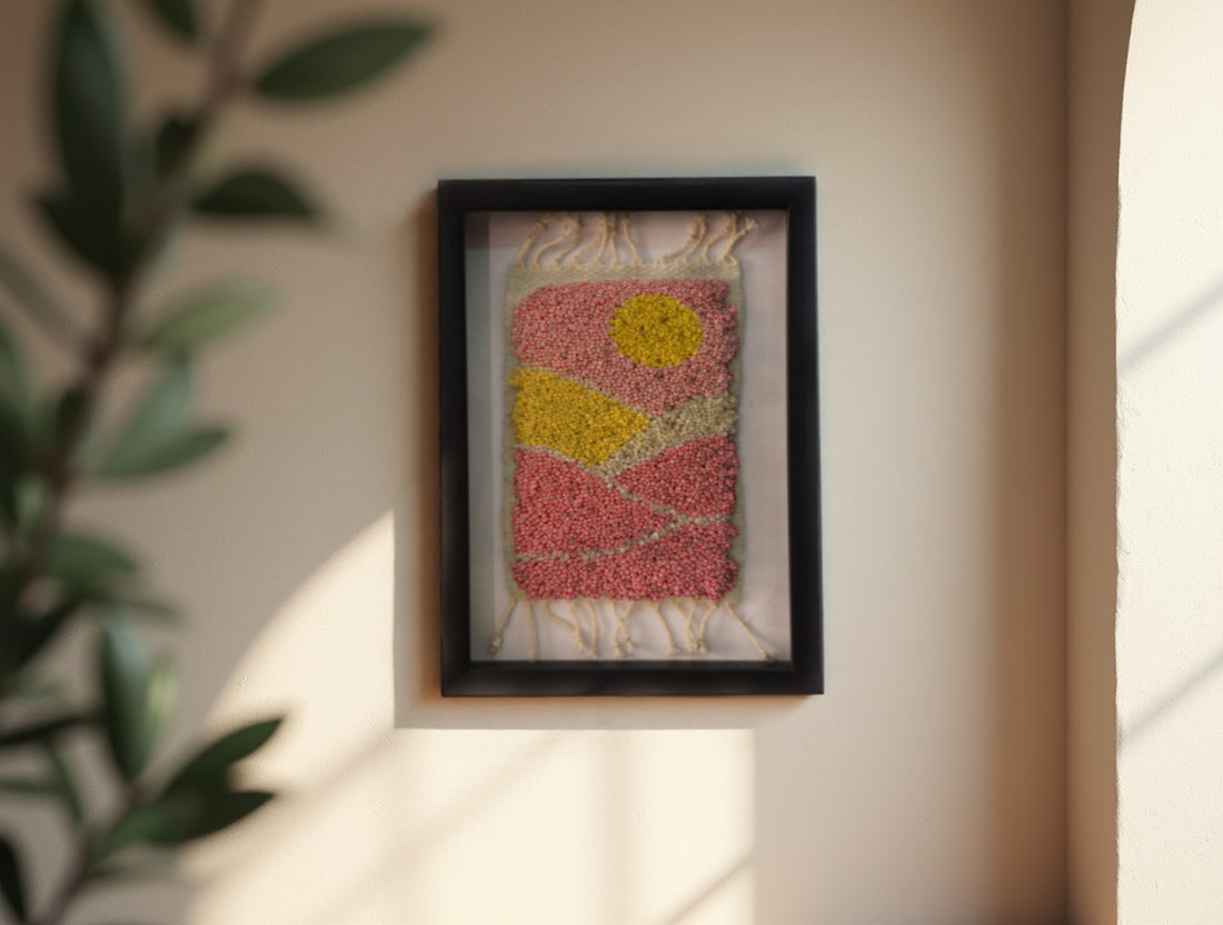 Framed Abstract Moroccan Rug Wall Art – Sun & Desert Wool Tufted Tapestry Decor